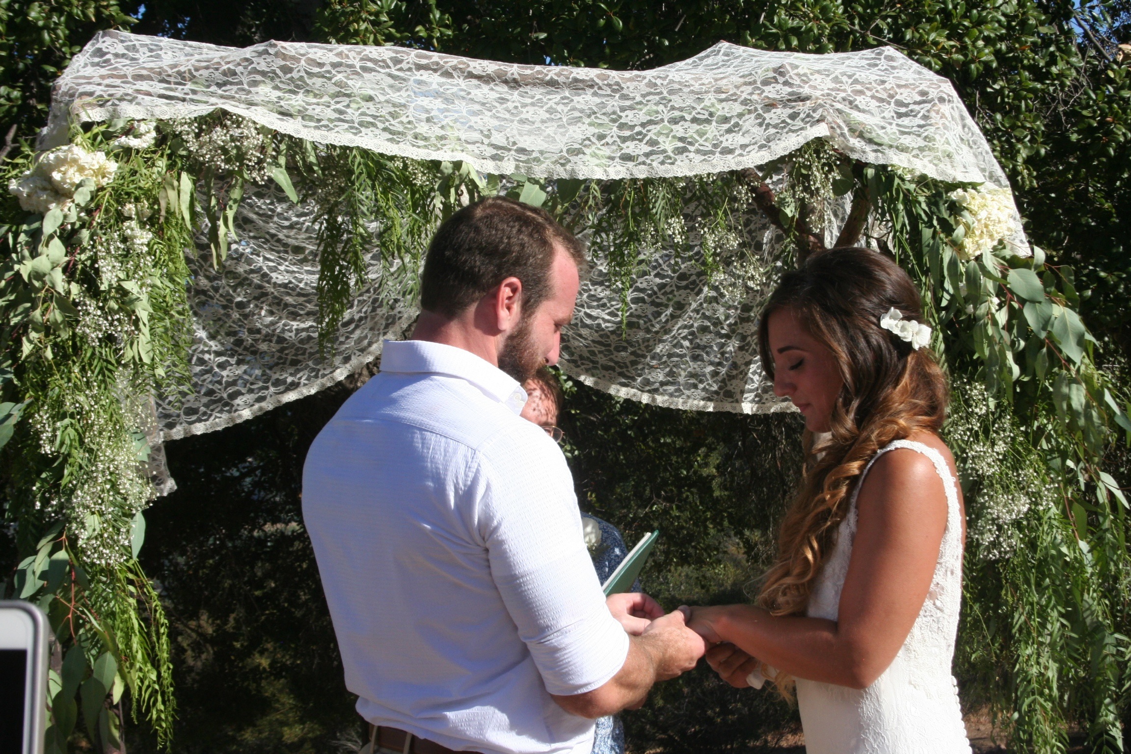 On Saturday my daughter married her best friend. Like my love story, hers began early. They met freshman year in college and nearly eight years later they wed. My artistic daughter designed everything for her beautiful wedding. Her father built the chupah. She hand painted driftwood with each guest’s name. My sisters placed over 80 vintage bottles filled with hydrangeas, greenery, baby’s breath and fairy lights on heirloom lace doilies at every table.